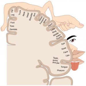 Wie naar bovenstaand plaatje kijkt van de cortex en de verdeling van de functies kan zien dat de aansturing van de vingers een groot deel van ons brein in beslag neemt. Wie de vingers in beweging brengt, brengt dus een groot deel van je brein in beweging. Onderzoek naar de werking van je vingers op je brein is heel interessant!
